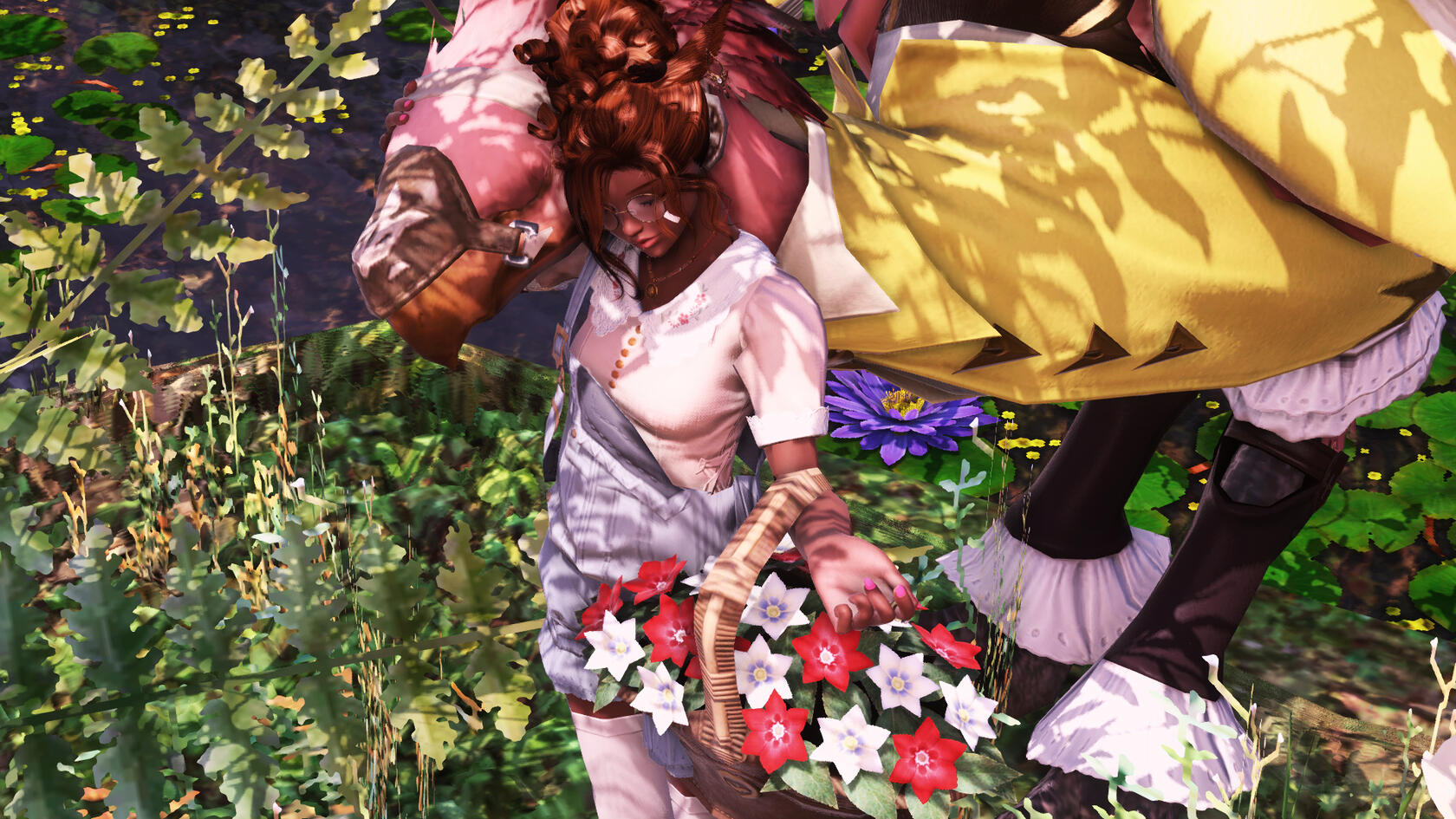 Out Foraging: Her occasional return to Gridania is usually spent in The Shroud, restocking materials and reagents for her potions. (For more dangerous trips, Motte will seek out mercenaries to protect or assist her)